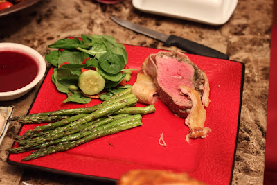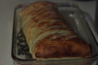 8.) Bake for 25-35 minutes.  Pastry should be golden brown when removed from oven and meat temperature (yes, you should invest in a meat thermometer!) should be 125-130F for medium-rare.