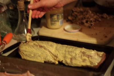 This recipes comes–as usual–by way of Elise Bauer over at Simply Recipes (you can find it here). Elise’s recipe calls for 1lb beef tenderloin whereas the one below calls for 3.5 lbs. I highly suggest making this dish on a smaller scale the first time you make it–one, so that you don’t sabotage a fantastic roast with dreams of grandiosity, and two, because this tenderloin is…well…very pricey.