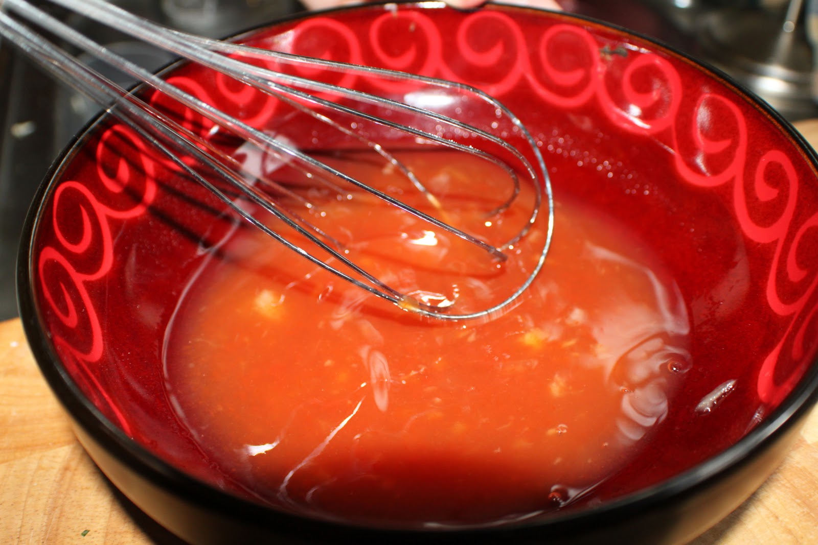 3.) Whisk together pineapple juice, ketchup, vinegar, salt, and brown sugar.
