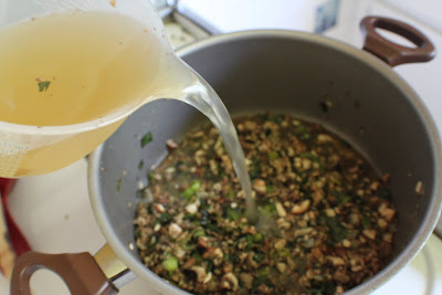 7.) Add leeks, onions, and pressed garlic; simmer for 5-7 minutes.